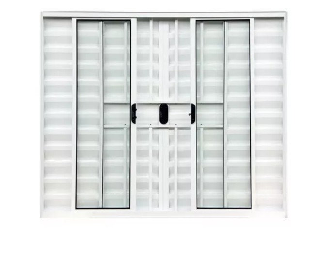 NÚMERO DE FOLHAS : 06. POSSUI DUAS FOLHAS FIXAS E QUATRO FOLHAS MÓVEIS, SENDO DUAS DE VIDROS. |